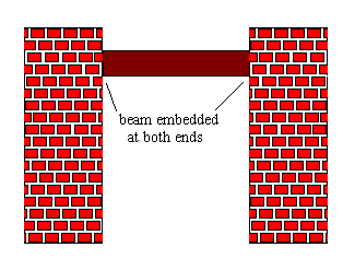 If the beam is embedded at both ends, there is no vertical deflection and the line of deflection is horizontal at the endpoints, which gives boundary conditions: