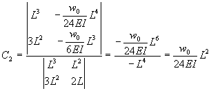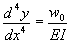 Ex1. A beam of length L is embedded at both ends, and the constant load w0 is uniform along its length. (I.e. w(x)=w0 for all x in the interval 0<x<L. Find the function representing the deflection of the beam.