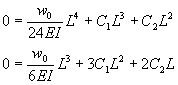 The boundary conditions y(L)=0, y(L)=0 gives the system of equations