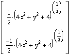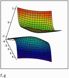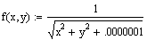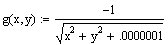 Here are the graphs of the upper and and lower surface. Note: I had to add a small number to each radical to get the denominator to not be zero at x = 0,y = 0, which wasn't allowed by the software. Otherwise, the graphs should be fairly accurate. There is an obvious asymptote of some type at the origin