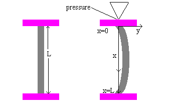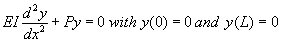 Consider a vertical column of length L hinged at both ends, with a constant vertical compressive force (pressure) P applied to its top. The boundary value problem governing its deflection y(x) is