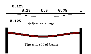 Our interest is in the interval between 0 and 1. Recall that the graph is showing positive y direction as up, but in our example we assumed it was down. The beams deflection is really as this diagram shows: