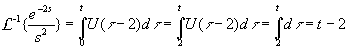 From Unit V Lesson 3, the inverse transform of e-2s/s is U(t-2), so we have