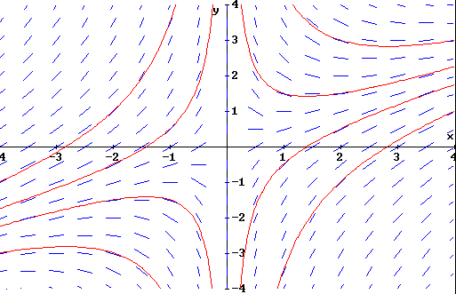 Ex1. Draw the direction field, then sketch a few possible solutions for the differential equation: